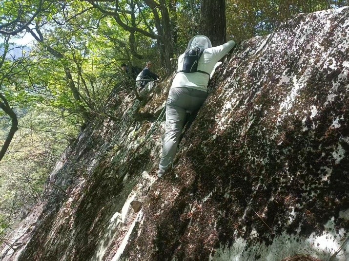 线路定位团队每日清晨身背仪器、手持柴刀,在密林中开路前行,需在陡崖如削的地形中攀援定位,直面天堑之险。荆棘划破衣襟,泥泞山路屡次令队员滑倒,但无人退缩。回到驻地已是晚上8-9点钟,洗漱用餐后还需整理内业,讨论明天的终堪方案。